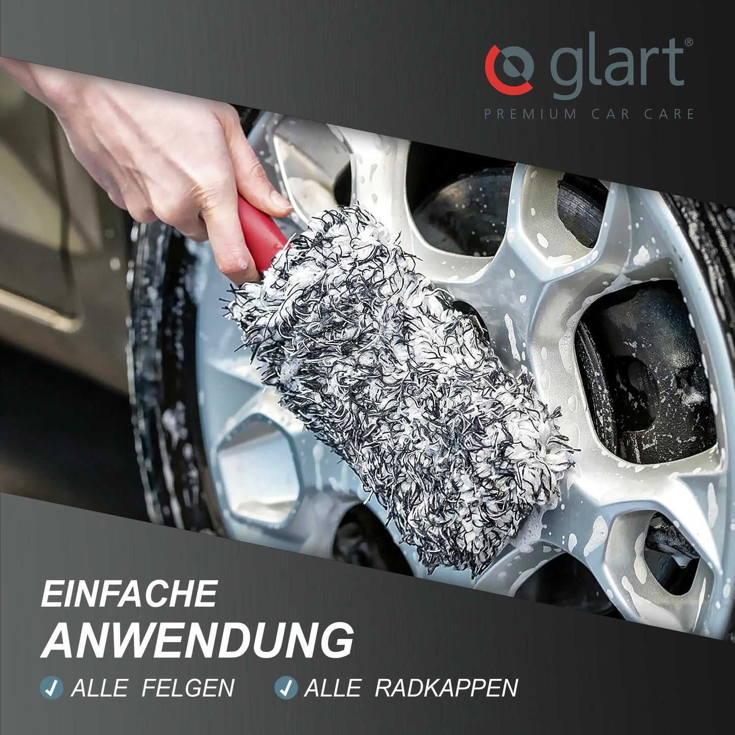 Die sanften Mikrofasern reinigen Alu-, Stahl- und Speichenfelgen gründlich und kratzfrei. Selbst empfindliche Oberflächen werden schonend gepflegt – für makellose Sauberkeit ohne Beschädigungen.