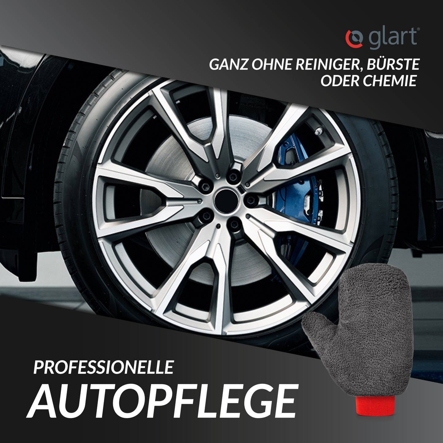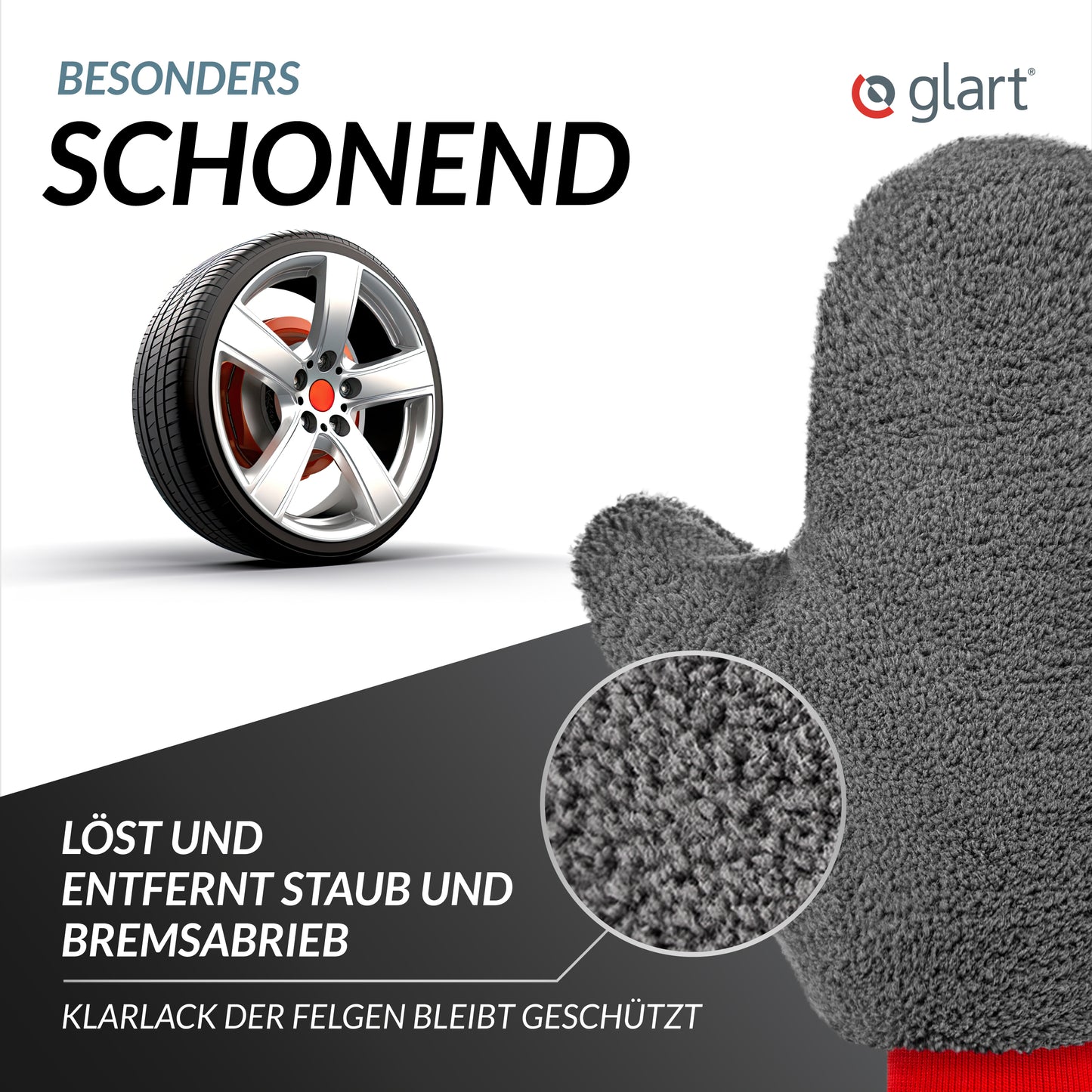 Der Handschuh entfernt Schmutz auch mit klarem Wasser – umweltschonend einsetzbar oder kombinierbar mit Glart Felgenreiniger. Nach Gebrauch einfach auswaschen oder in der Waschmaschine reinigen – mehrfach verwendbar.