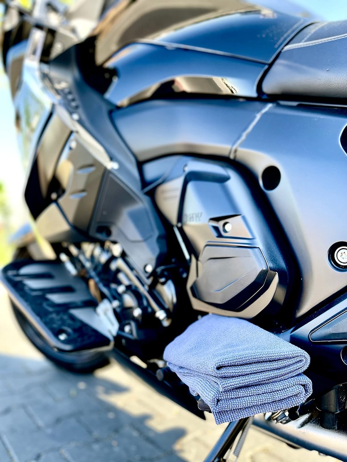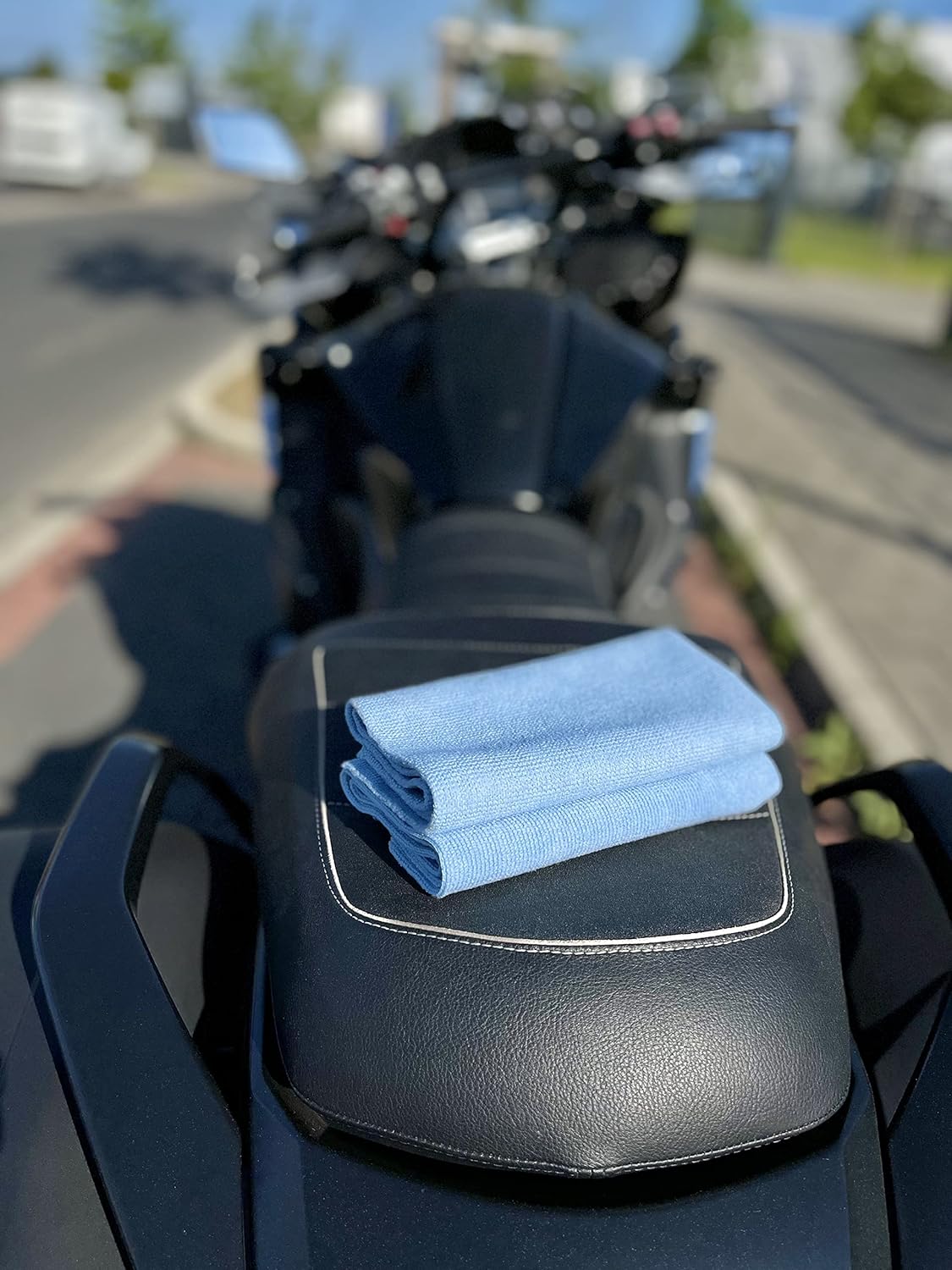 Das 2er Set Premium Mikrofasertücher (70x40 cm) ist ideal für die schonende Pflege von Motorrädern und Autos. Mit nicht-scheuernder Ultraschallkante entfernt es zuverlässig Lackpolitur, Kettenöl und Schmutzrückstände, ohne Mikrokratzer zu hinterlassen. Perfekt für die Lackpflege und Aufbereitung von allen Motorradtypen, egal ob glänzend oder matt.